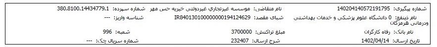 مبلغ موردنیاز برای درمان این نوزاد حس مهری مربوط به موارد زیر میباشد: